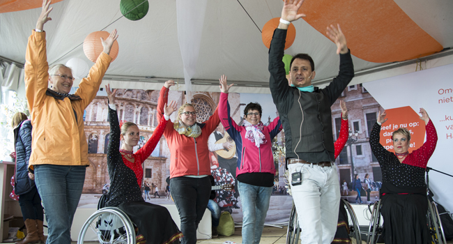 Een beetje zenuwachtig begon ik aan de workshop. Ik had nog nooit eerder zo’n groep cursisten gehad. Maar al snel kwam ik erachter: dit werkt! Mensen in een rolstoel kunnen eigenlijk alle facetten van flamenco beoefenen: draaien, klappen, het bewegen van de armen. En voor het voetenwerk zochten we gewoon naar andere mogelijkheden om het ritme aan te geven: extra hard klappen, castagnetten of een ander percussie-instrument.
