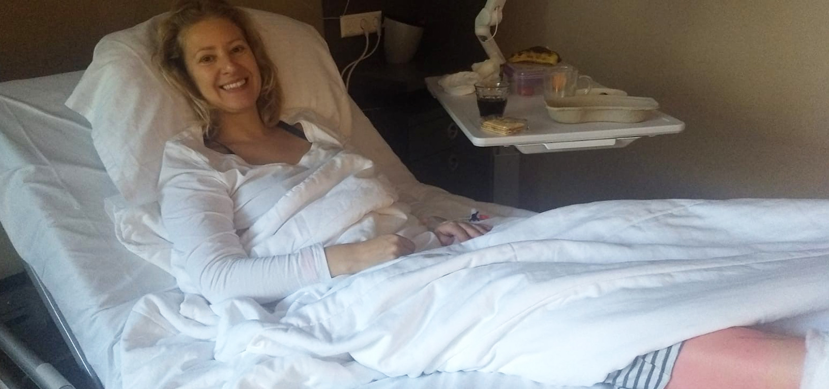 Met een bleek gezichtje kijkt Rosie van mijn net geopereerde been naar mijn gezicht en weer terug. “Mama au” fluistert ze bijna onhoorbaar. Ik probeer mijn meest geruststellende glimlach tevoorschijn te toveren met mijn morfine hoofd. Heel voorzichtig schuifelt ze dichterbij. Ze is zichtbaar onder de indruk van het verband. Heel zachtjes legt ze haar handje op mijn bovenbeen en leunt naar voren. Ik voel een kusje op mijn wang. “Zo,” zegt ze en holt naar papa om te spelen.