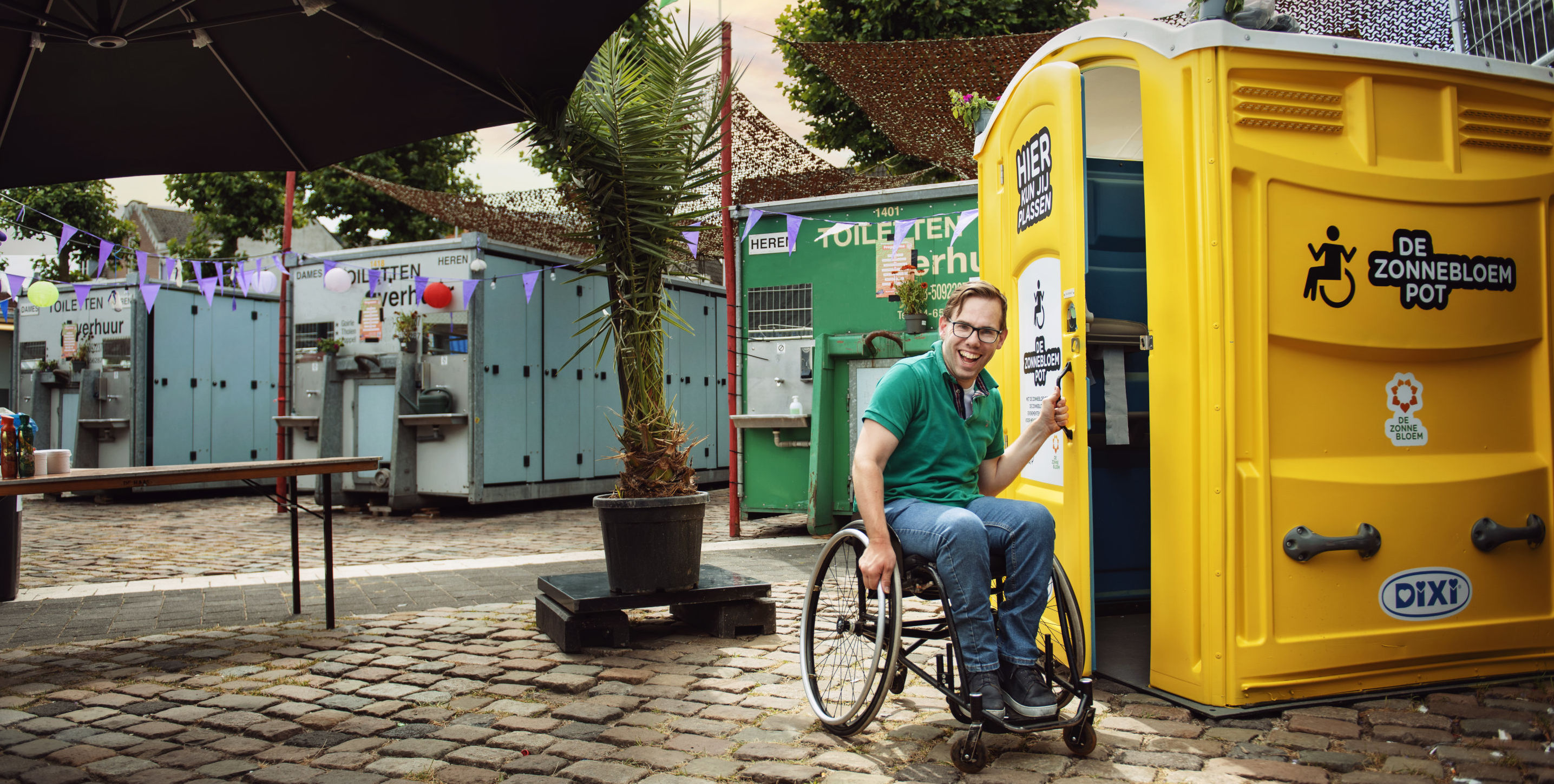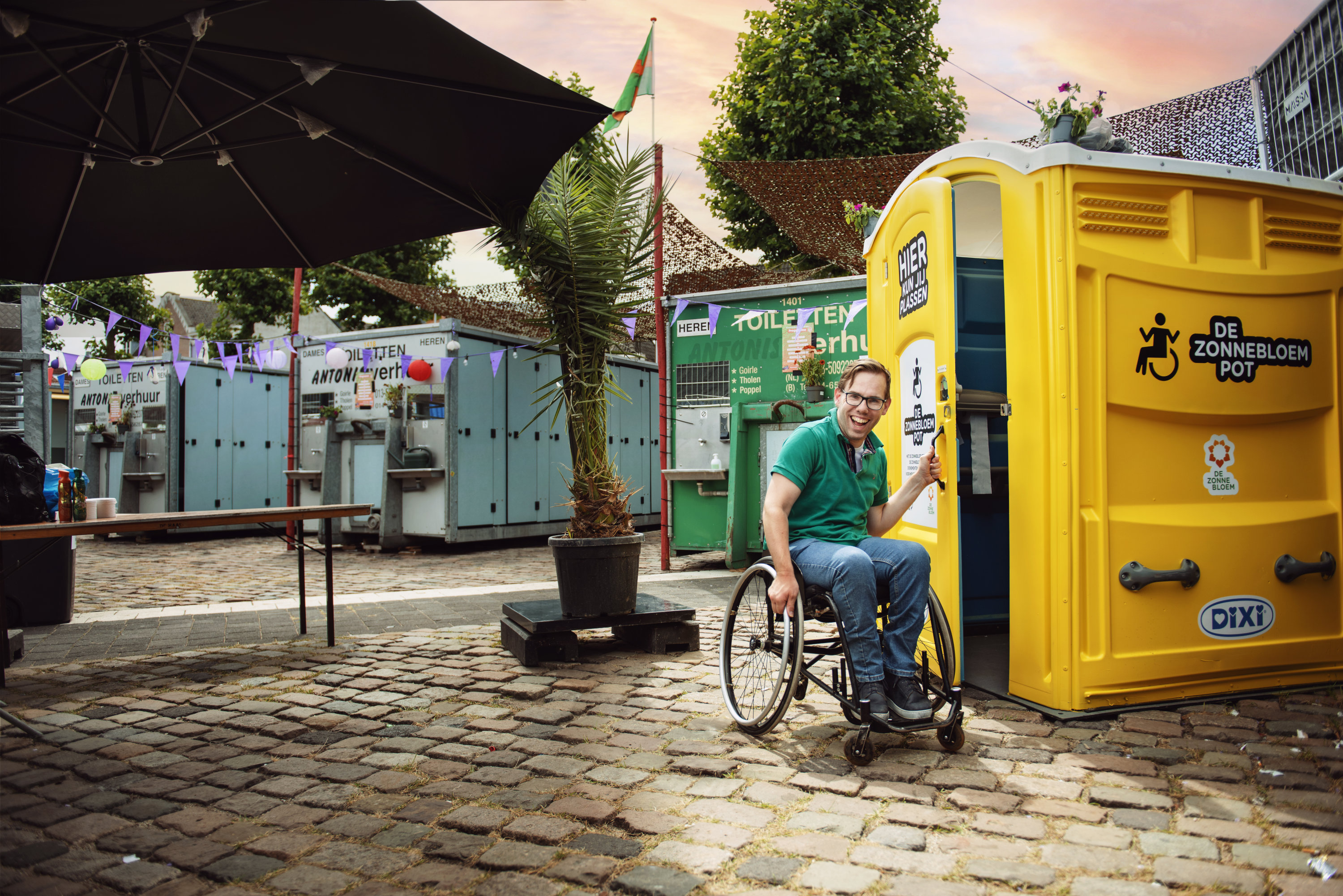 Huur een ZonnebloemPotThuisblijven omdat je niet naar het toilet kunt. Dit is voor mensen met een beperking vaak de realiteit. De vraag die zij iedere keer weer opnieuw moeten stellen als ze de deur uit gaan: waar kan ik plassen? Daarom ontwierp DIXI in samenwerking met Nationale Vereniging de Zonnebloem een toegankelijk, mobiel toilet: de ZonnebloemPot.