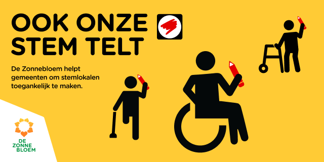 Stemrecht begint bij toegankelijkheid. Toch blijft voor veel mensen de deur van het stemlokaal letterlijk (of figuurlijk) dicht: 1 op de 3 stemlokalen is niet goed toegankelijk. Daarom geeft De Zonnebloem met de campagne ‘Ook onze stem telt’ het startsein om samen met burgemeesters en gemeenten verbeteringen door te voeren vaak met slimme, simpele aanpassingen. Met hulp van lokale vrijwilligers, praktische tools en een checklist in 7 stappen werken we toe naar één doel: dat op 18 maart écht elke stem telt.